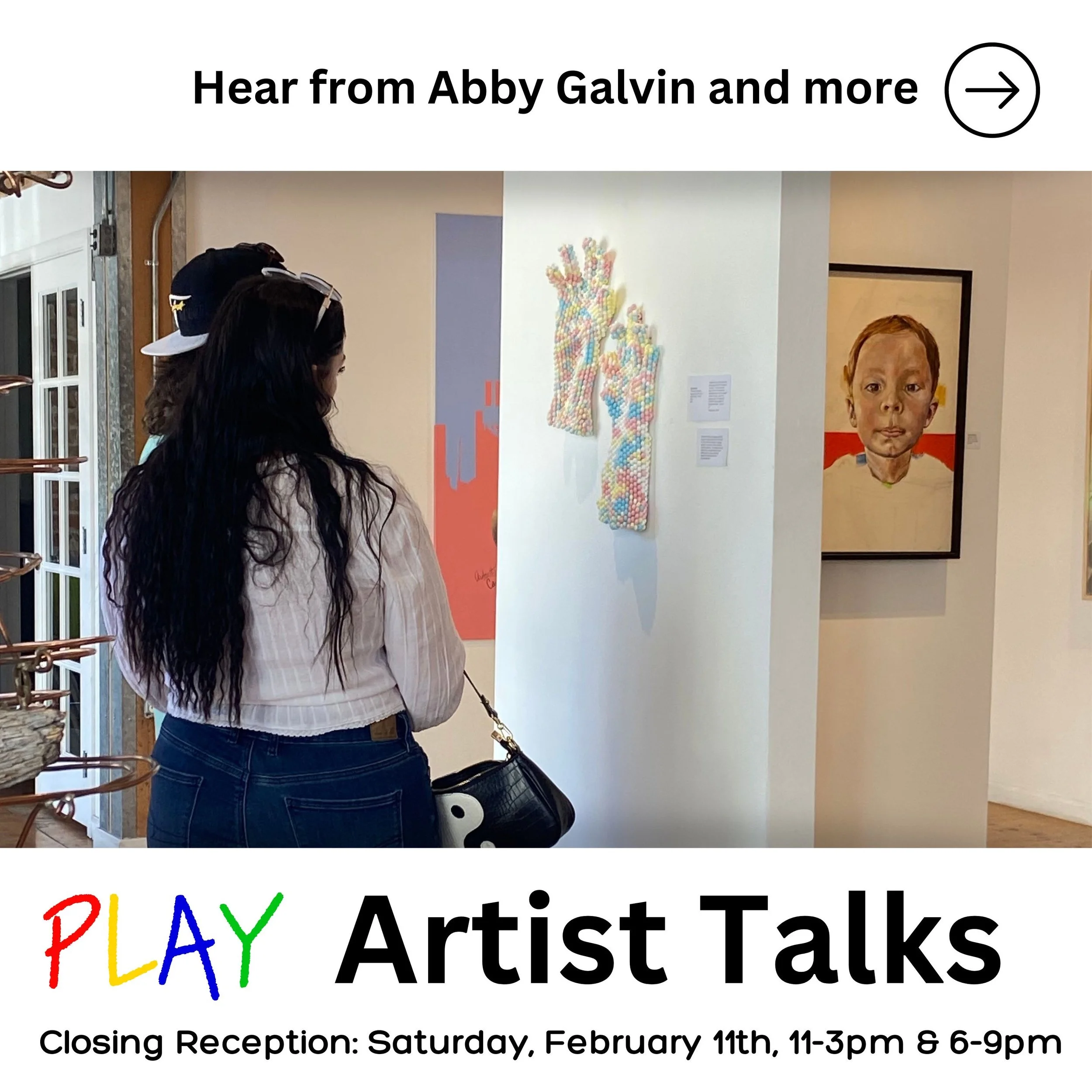 These ten artists come together as we toy with the concept of play... or maybe work? What is play especially as we distinguish it from work, and how have we come to apply these concepts in daily life? Play and work both can be tools for building social connections, harnessing creativity, learning, loving, and surviving. Please, appreciate the connections of those around you as we live to keep playing and working together.